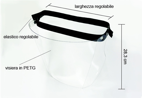 Visiera protettiva in PETG trasparente, con fascia elastica regolabile, lavabile e riutilizzabile. Gestisci al meglio la sicurezza delle persone. Non è un dispositivo di protezione individuale nè un dispositivo sanitario. Prodotta e confezionata in Italia.